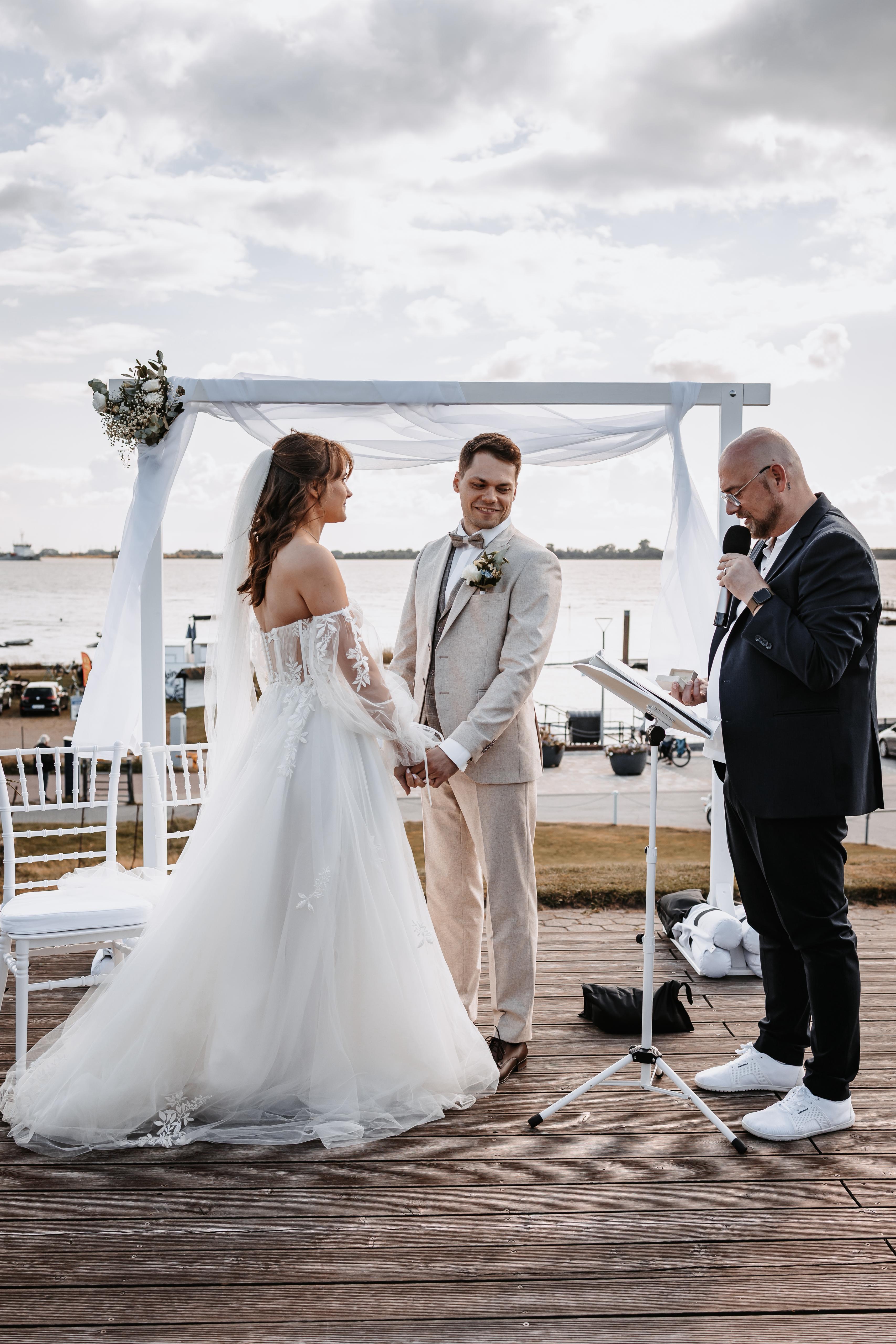 Ian hat unsere Trauung zu einem Highlight gemacht. Seine Rede war nicht nur bewegend, sondern spiegelte unsere gemeinsame Geschichte auf eine Weise wider, die uns und unsere Gäste zutiefst berührt hat. Mit viel Feingefühl und Charme hat er unsere besonderen Momente hervorgehoben und in Worte gefasst.Besonders beeindruckt hat uns, wie gut Ian uns verstanden und unsere Persönlichkeiten in seiner Rede zum Ausdruck gebracht hat. Seine Worte waren authentisch und trafen genau den richtigen Ton – mal humorvoll, mal ernst, immer passend.Unsere Gäste haben seine Rede ebenfalls sehr gelobt und viele sagten, sie hätten selten eine so schöne und persönliche Traurede gehört. Ian hat mit seiner warmen und einfühlsamen Art für eine wunderbare Atmosphäre gesorgt.Seine Fähigkeit, Geschichten lebendig zu erzählen und die Essenz unserer Beziehung einzufangen, ist außergewöhnlich. Er hat unseren Tag perfekt gemacht.Vielen Dank, Ian, für deine wundervolle Rede und dass du unsere Hochzeit so besonders gemacht hast!
