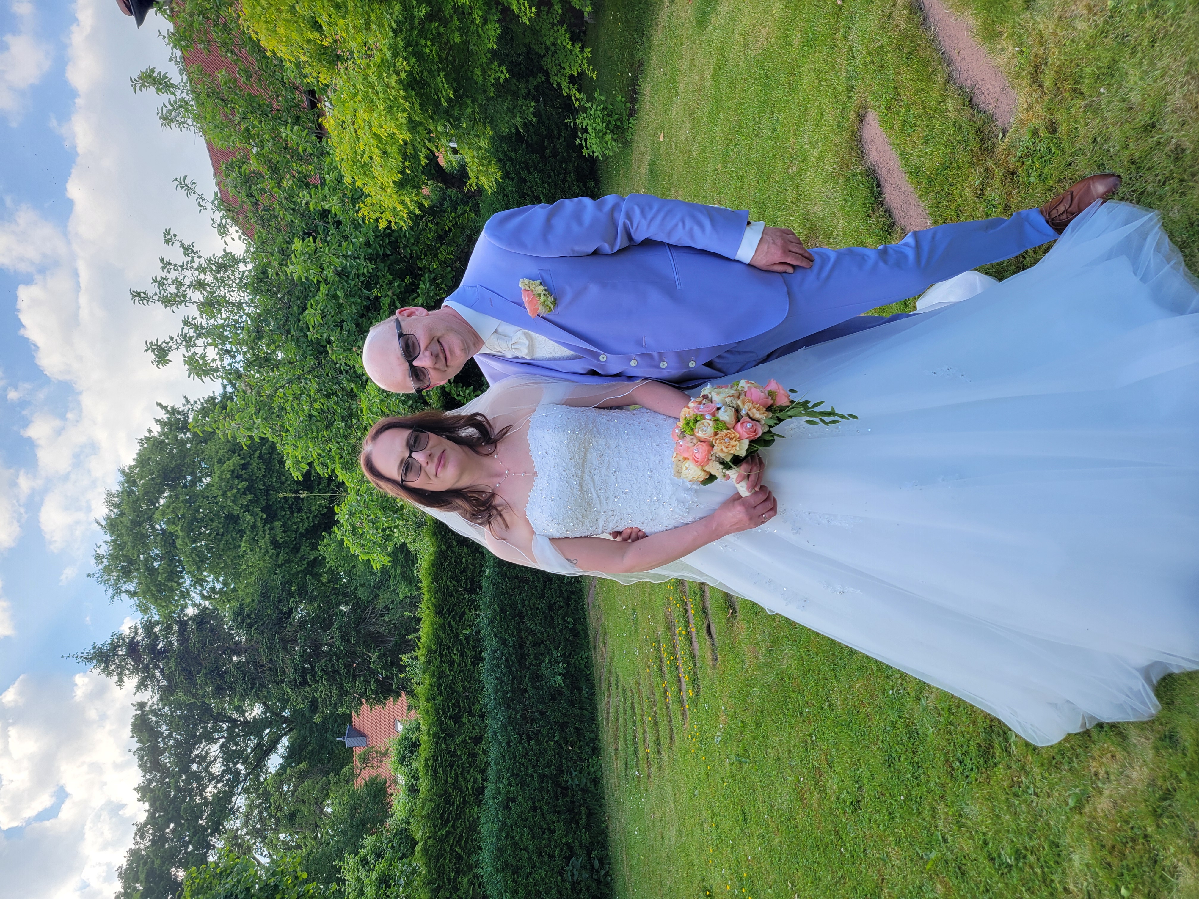 Liebe Janette, du hast unseren Tag zu etwas ganz besonderem gemacht! Für uns war die freie Trauung am 01.07.22 unser richtiger Hochzeitstag. Ein paar Mal hättest du Matthias soweit gehabt, dass er sich ein Tränchen verdrückt, aber der Mann ist standhaft geblieben. Du bist ein unglaublich toller und lieber Mensch. Es ist schön, dass wir dich ein wenig kennenlernen durften. Ich glaub, das größte Kompliment an dich und deine Arbeit ist, dass viele dachten, du bist eine gute Freundin von uns. Wir haben noch den ganzen Tag zu hören bekommen, wie schön, witzig und ergreifend die Rede war. Und die kleinen Holperer machen dich nur noch sympathischer. Einen richtig großen Eindruck hast du ebenfalls auf meine Eltern gemacht und mein Papa hat dich ja auch gleich angesprochen, wegen der Erneuerung ihres Eheversprechens. Bleib wie du bist! Wir wünschen dir alles Liebe und sagen "Auf Wiedersehen! :-)