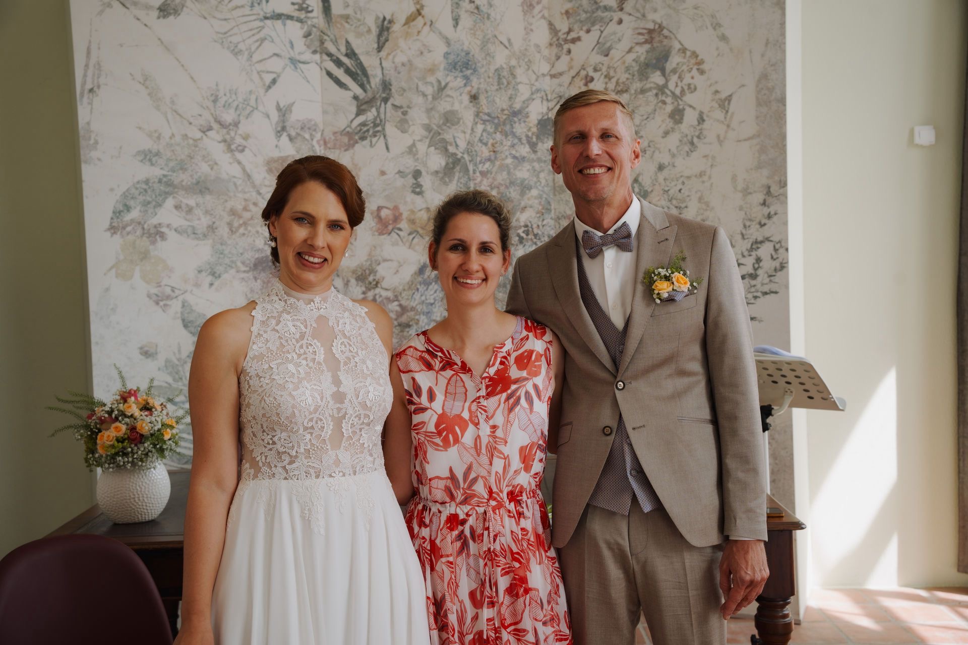 Liebe Juliane, an dieser Stelle möchten wir Dir nochmal Danke sagen. Danke, dass du mit Deinen wunderbar passenden Worten unseren Tag zu etwas ganz besonderen gemacht hast. Von der ersten Kontaktaufnahme bis zur Trauung hast Du uns mit Deiner Professionalität, Herzlichkeit und Kreativität beeindruckt. Du hast es geschafft unsere persönliche Geschichte auf eine wunderschöne und feinfühlige Weise in die Traurede einzubinden, was den Moment für uns und unsere Gäste unvergesslich gemacht hat. Du hast Dir unglaublich viel Zeit genommen uns kennenzulernen und unsere Wünsche und Vorstellungen zu verstehen. Deine offene Art und Dein Engagement haben uns sofort das Gefühl gegeben, in den besten Händen zu sein. Die Trauung war perfekt auf uns abgestimmt und hat eine wunderbare Atmosphäre geschaffen, die alle Anwesenden berührt hat. Wir können Dich nur wärmstens empfehlen! Du bist nicht nur eine super Rednerin, sondern auch eine wunderbare Person, die mit viel Liebe und Leidenschaft arbeitet. Vielen lieben Dank, für diesen besonderen Tag, den wir nie vergessen werden! Alles Liebe für Dich